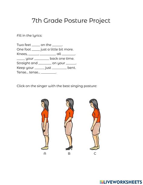 Web Singing Posture (8Th Grade) Worksheet Live Worksheets > English Singing Posture (8Th Grade) 3 Page Worksheet On Proper Singing Posture.