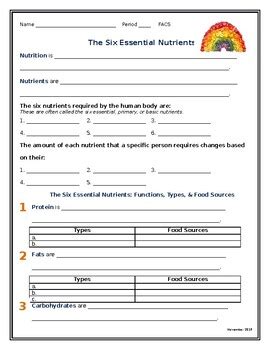 Worksheets Are The Six Essential Nutrients, The Six Nutrients Student Work, 6 Essential Nutrients, Lesson 6.