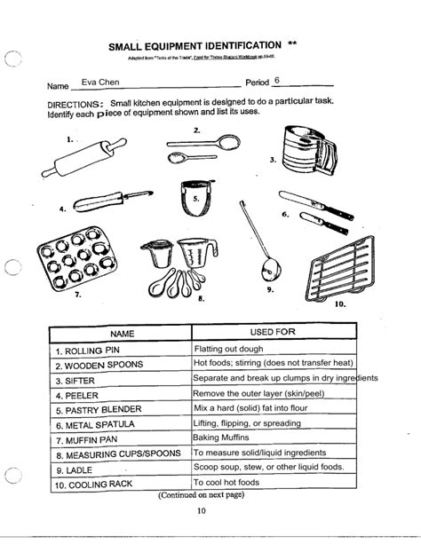 Web Small Equipment Identification Complete The Small Equipment Identification Worksheet Make Sure To Include What The Utensil Is Used For After You Identify It You Will Have A Quiz.