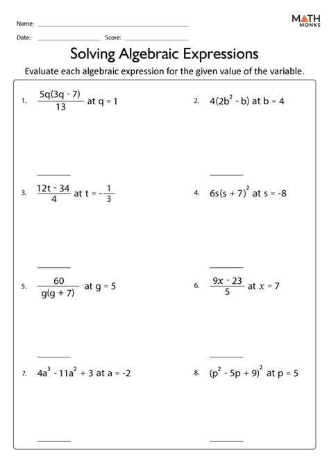 Solving Algebraic Expressions Worksheet. Answers in the form x =. Number theory, geometry, and other analysis.