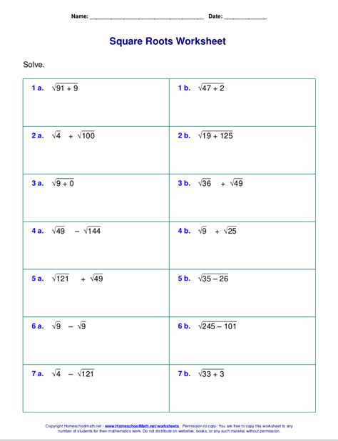 Web Square Root Worksheets Can Be Used To Improve The Speed And Accuracy Of Students While Solving Problems To Find The Square Roots Of Integers, Fractions Or Decimals.
