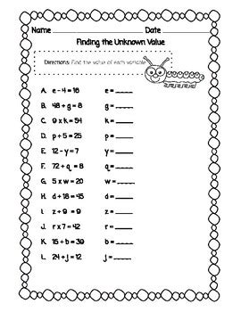 Solving For Unknown Variables Worksheet. Substitute the value of the variable in the given equation to verify the solution of the equation. It is a worksheet that can be used as a homework assignment or an.
