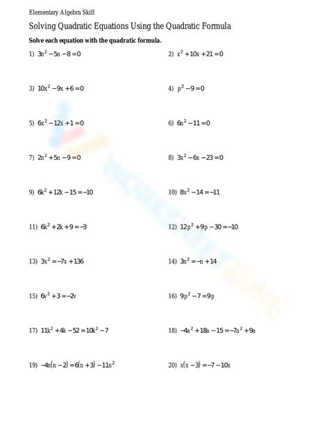 Solving Using Quadratic Formula Worksheet. Web solving using the quadratic formula worksheet solve each equation using the quadratic equation. Web factoring and solving quadratic equations worksheet math tutorial lab special topic example problems factor completely.