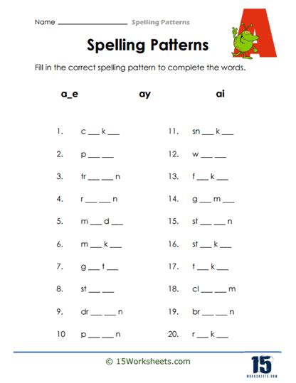 Web this resource has 9 fun and engaging worksheets for your students to practice reading and spelling words with the long a spelling patterns ai, ay, a, and eigh. These patterns are tricky for a child to spot at first. Award winning educational materials designed to help kids succeed.