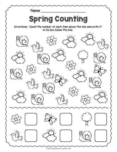 Then count how many you found andfill in the boxes below with how many of each item. Web these spring counting worksheets are specially for preschoolers who are early learners in basic math. Each calculation has colourful themed illustrations to engage the children.