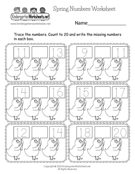 Spring Numbers Worksheet. These would be great for spring morning. Kids can practice writing all the numbers between 1 and 20.