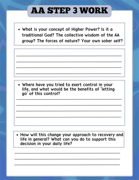 Write about your will and how it has gotten in the way of your recovery. The best resources by printable air. Step three is the central theme of all of the steps.