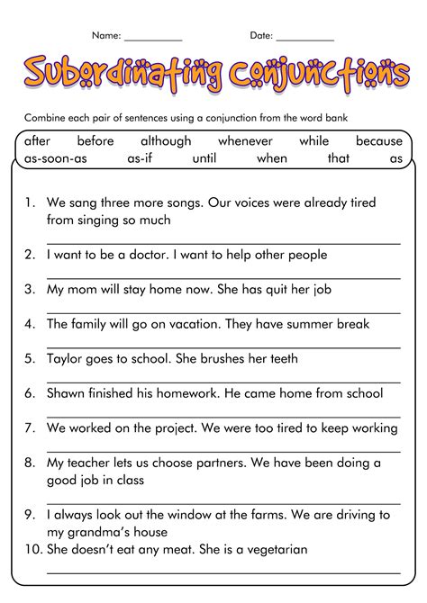 Subordinating Conjunctions Worksheet 5Th Grade. Web a subordinating conjunction joins two clauses to make one dependent on the other. Web subordinating conjunctions are used to create complex sentences out of a main clause and a dependent clause.